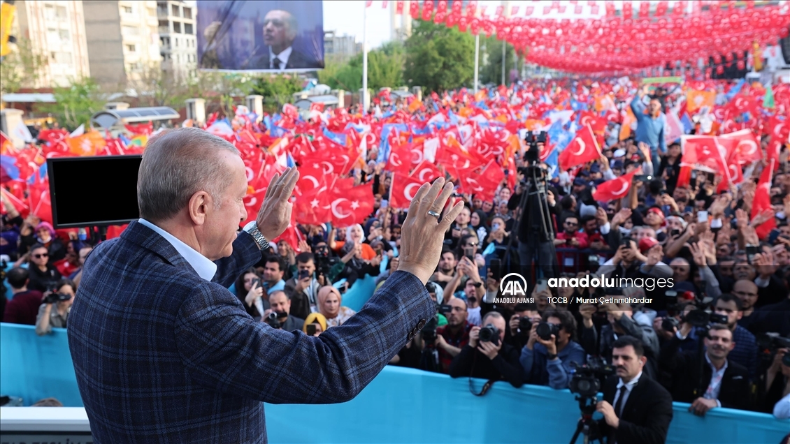 "Asırlık hizmetleri 20 yıla sığdırdığımız bu başarının arkasında güçlü bir yönetim, güçlü bir siyasi irade vardır. Ülkemizin kaynaklarını tefecilere, çetelere, bir avuç elite, elinde viski kadehiyle ahkam kesen seçkinlere yedirmeme kararlılığımız var. Bay Bay Kemal ne diyor, 'İngiltere'den 300 milyar dolar getiriyormuş.' Nerede bu para? Nasıl getiriyorsun? Yahu sana kim güvenir de böyle bir parayı verir? Açık açık da söylüyor. Demek ki bunlar tefeciliğe soyundu, başka bunun izahı yok. Daha dur bakalım, seçim mi kazandın? Ne oldu da böyle bir parayı getiriyorsun? Benim milletim bu tefecilere, bu Bay Bay Kemal'e ve yandaşlarına 14 Mayıs'ta gereken dersi verecek mi? Öyleyse durmak yok, yola devam. Vesayet sistemi yerine tüm kurumları ve kurallarıyla demokrasiyi tesis etme mücadelemiz var. Milletimizin başına bela olan eli kanlı canileri tasfiye etme cesaretimiz var.