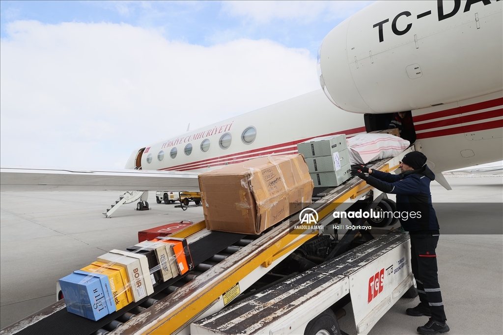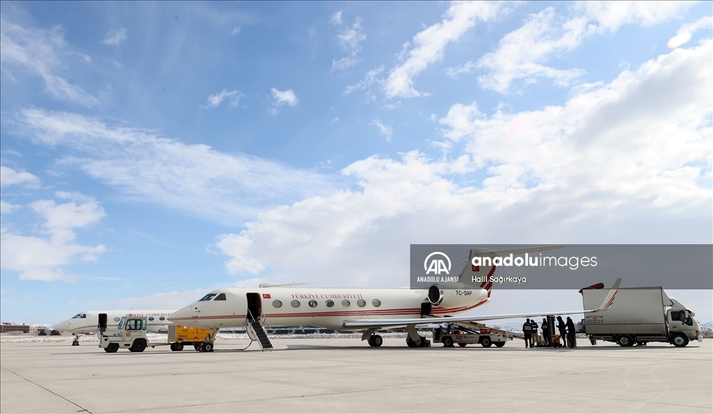 Cumhurbaşkanlığına ait 2 uçak, merkez üssü Kahramanmaraş'ın Pazarcık ve Elbistan ilçeleri olan, 10 ili etkileyen 7,7 ve 7,6 büyüklüğündeki depremlerde görev yapacak sağlık ve arama kurtarma ekiplerine tahsis edildi.