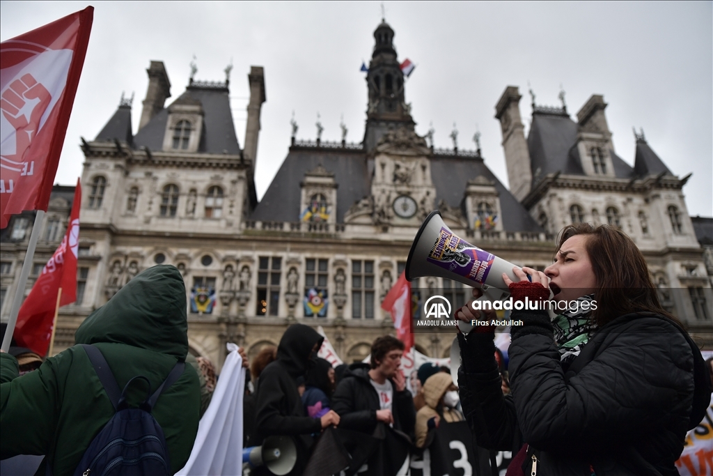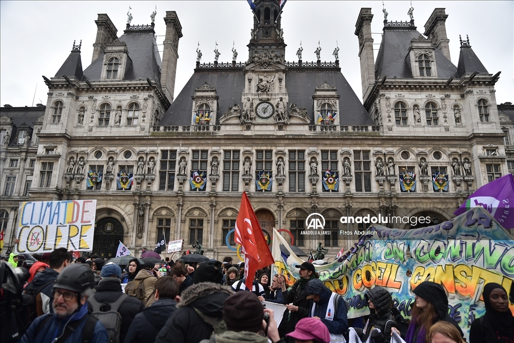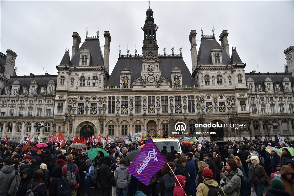 Paris'te belediye binasının önüne toplanan göstericiler, Konseyin kararının açıklamasının ardından sokaklarda yürümeye başladı.