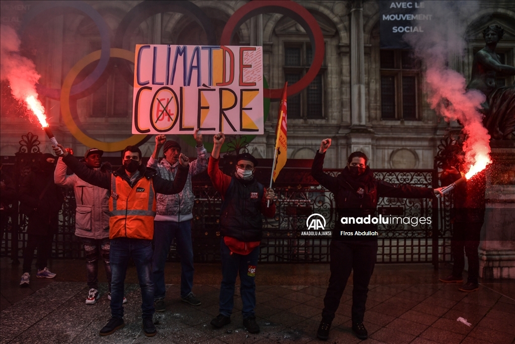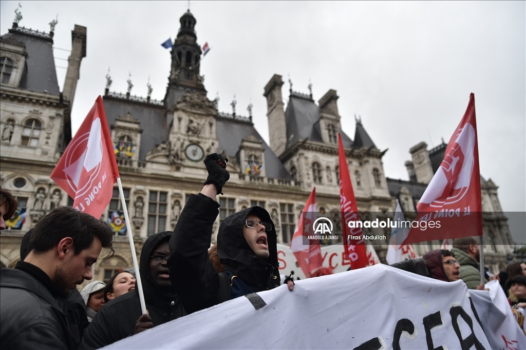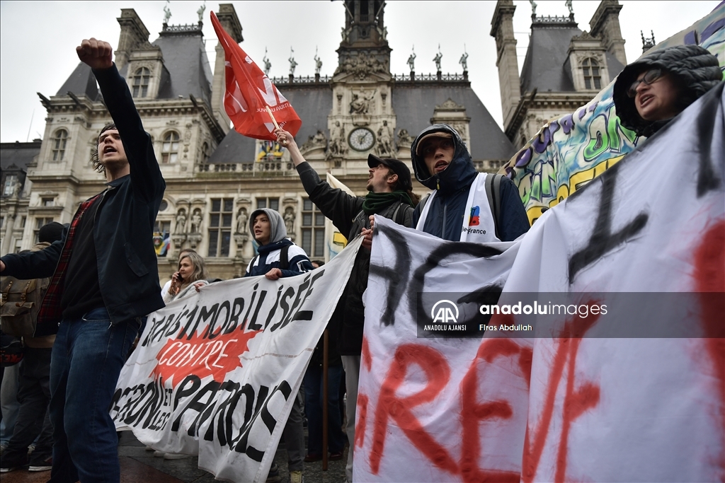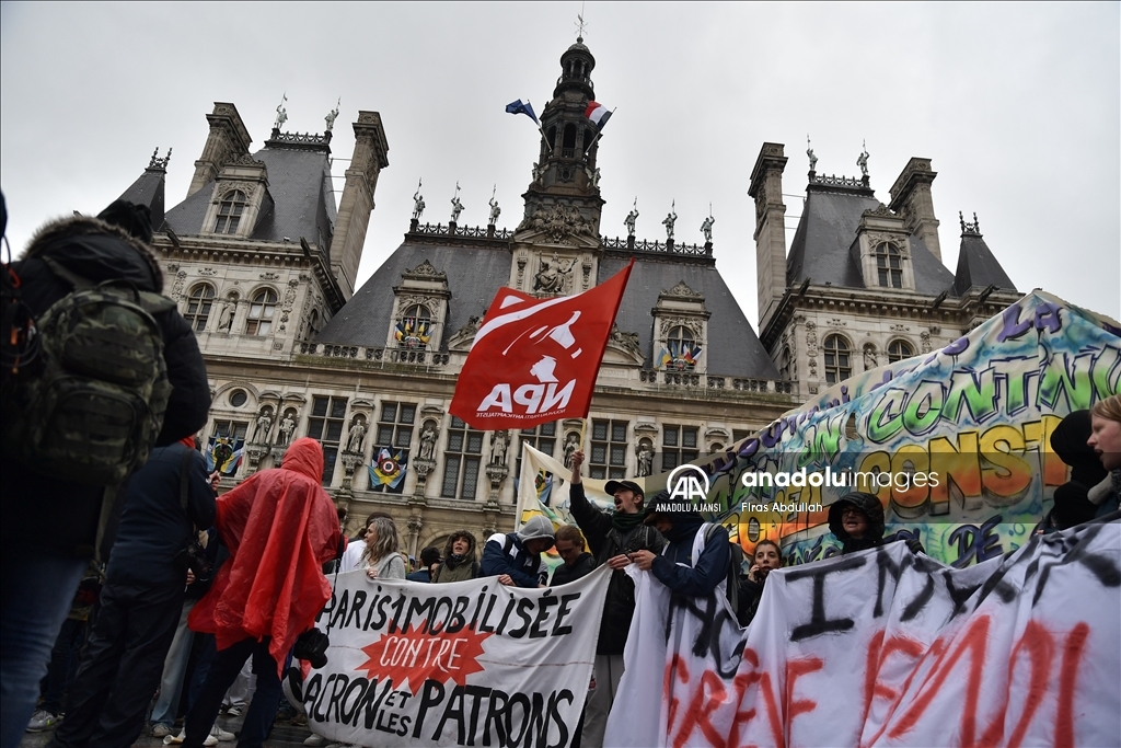 Başkentin sembolik Cumhuriyet Meydanı'ndan geçen göstericiler, çöp bidonlarını yollara devirdi ve ateşe verdi. Otobüs duraklarının camlarının kıran göstericiler, "Paris ayağa kalk" şeklinde slogan attı.