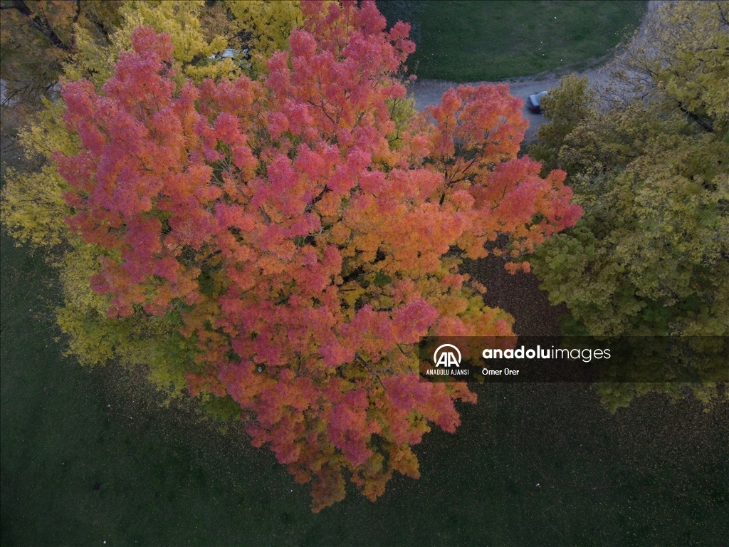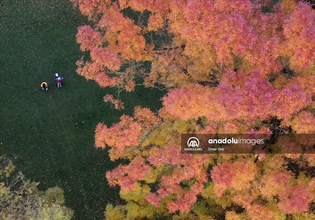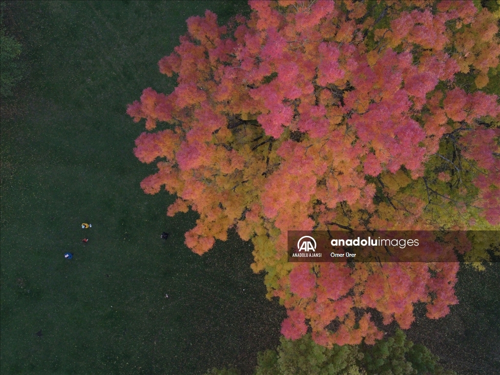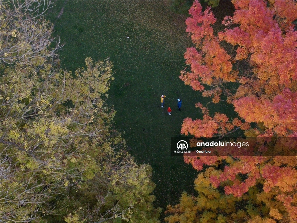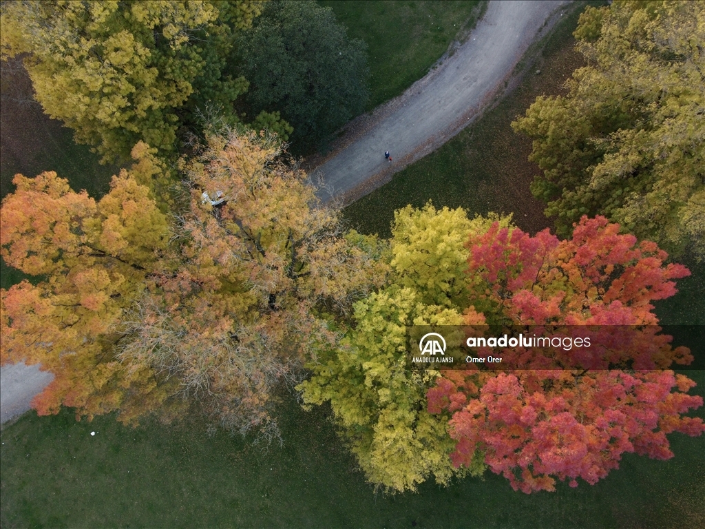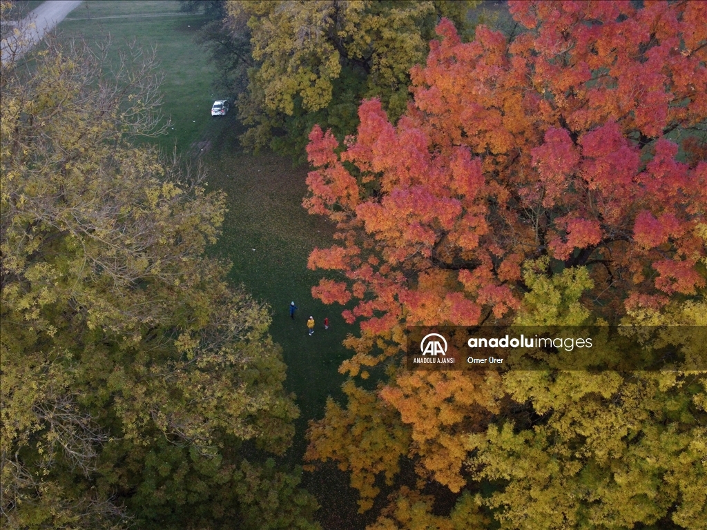 Sık ağaçların bulunduğu park, hazan mevsiminde doğaseverlerin ilgisini çekiyor.