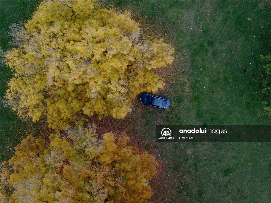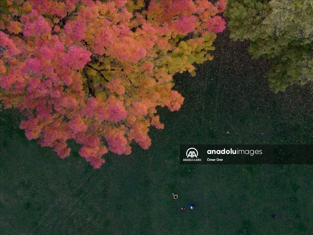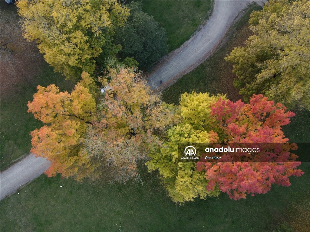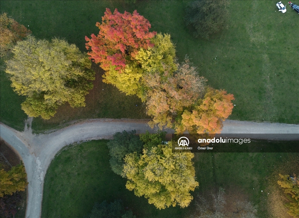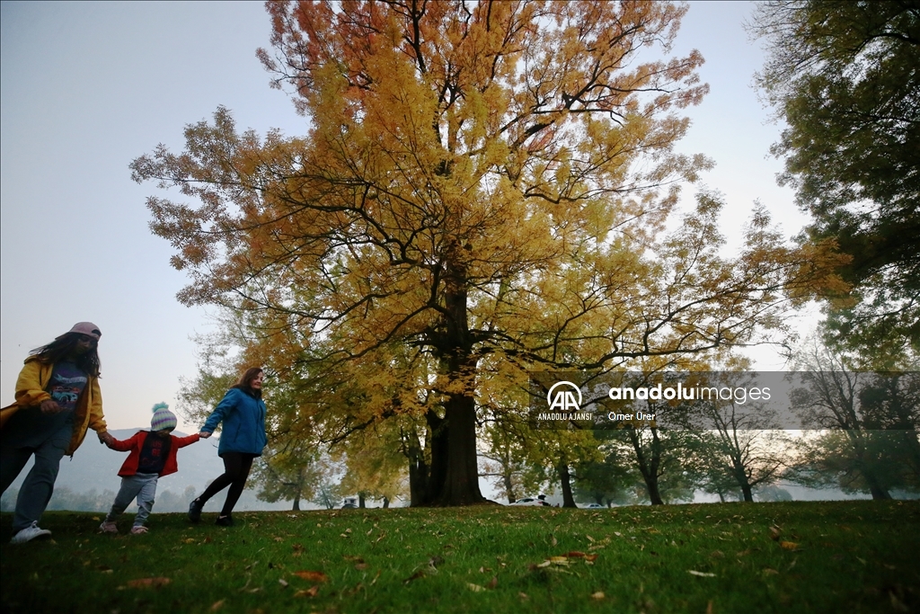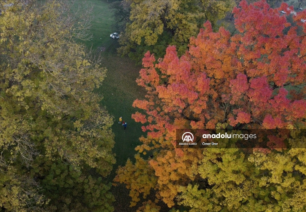 Sık ağaçların bulunduğu park, hazan mevsiminde doğaseverlerin ilgisini çekiyor.