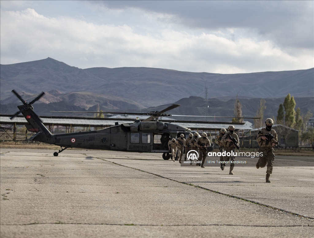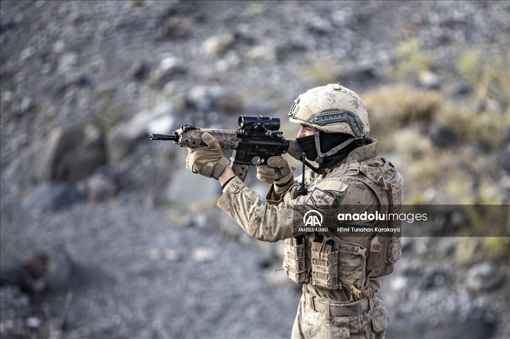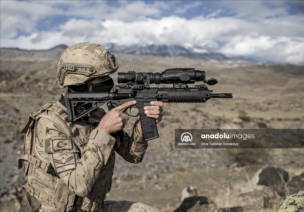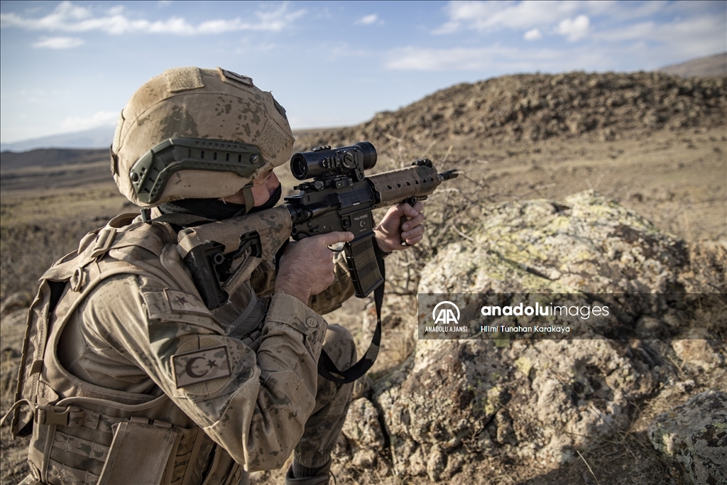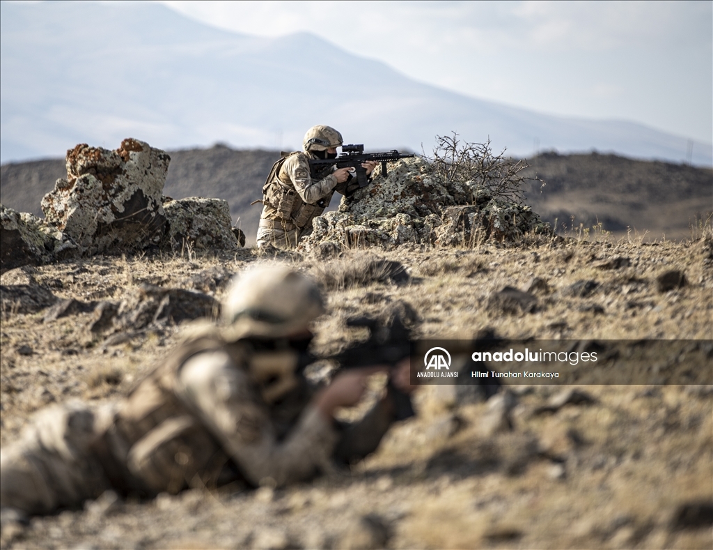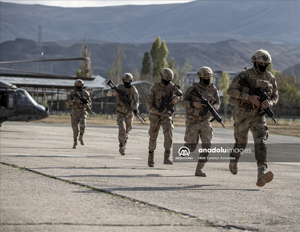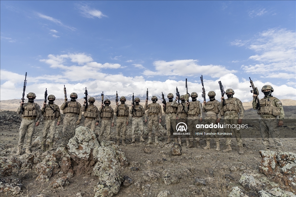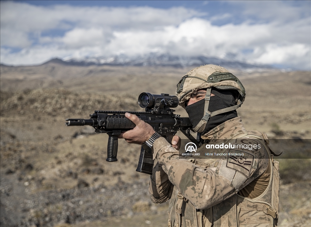 Başta Ağrı Dağı olmak üzere Tendürek ve bölgedeki hakim noktalarda teröristlerin korkulu rüyası olan Mehmetçik, tatbikatın sonunda ise "Komando Andı" okudu.