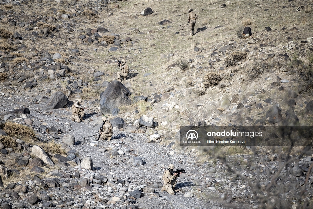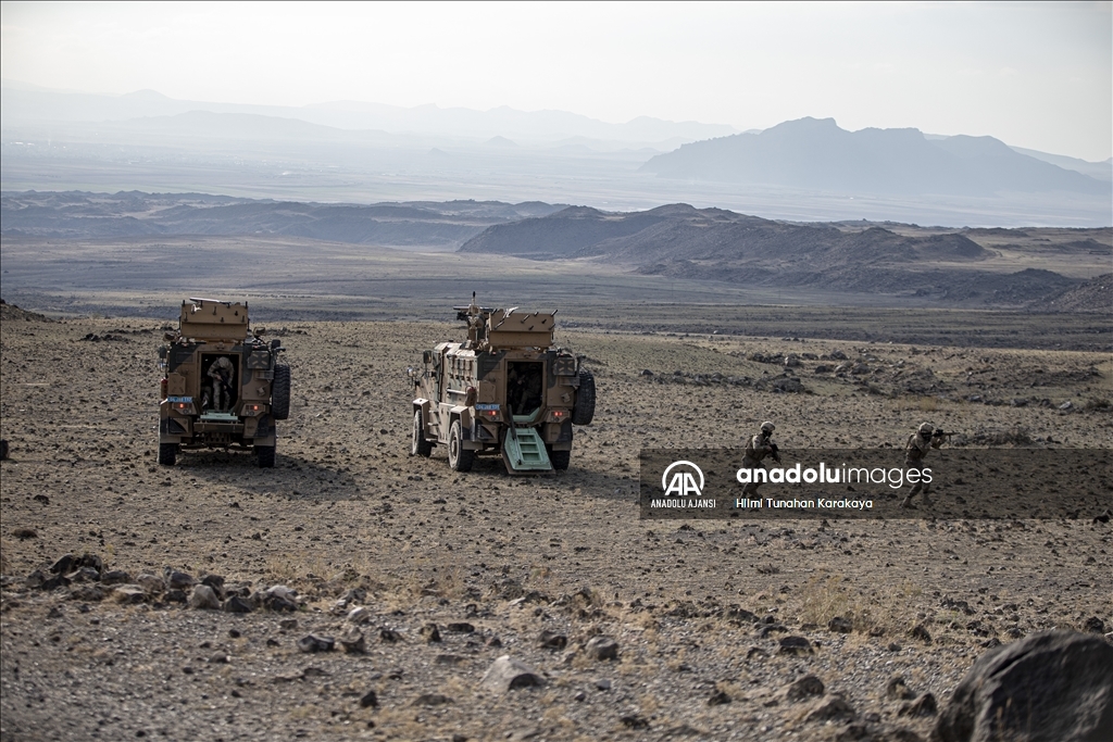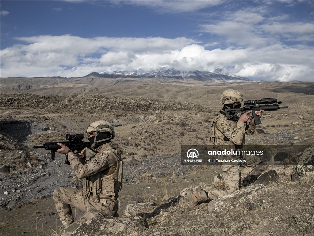 Ağrı Dağı bölgesinin hakim noktalarında teyakkuzda olan komandoların yaptığı tatbikatta, senaryo gereği komandolar "ara bul yok et" parolasıyla operasyona çıktı.