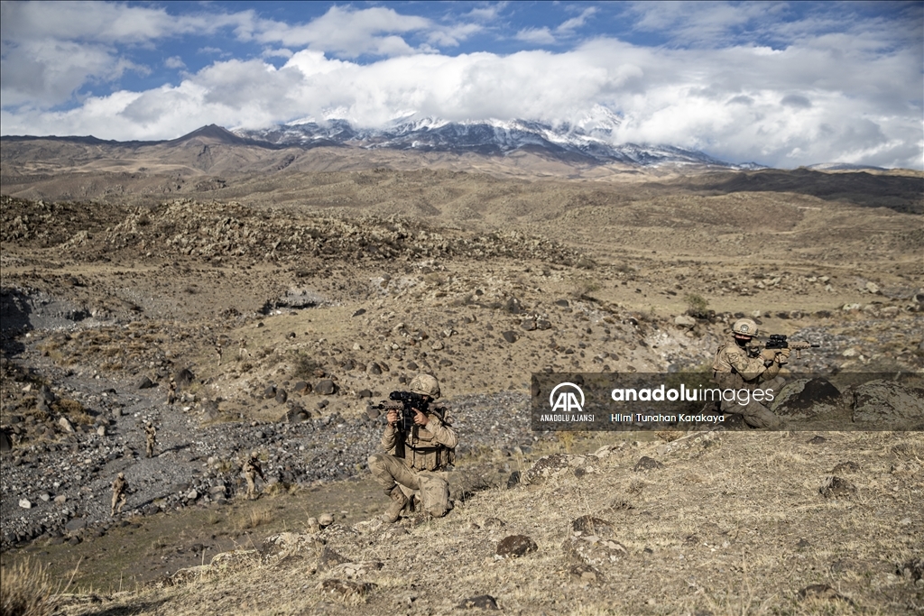 Şu sıralar kış öncesi Ağrı Dağı bölgesinde terör örgütü PKK'ya yoğun operasyonlar yürüten komandolar, yüksek rakımda zorlu arazi koşullarına sahip bölgeleri didik didik tarıyor.